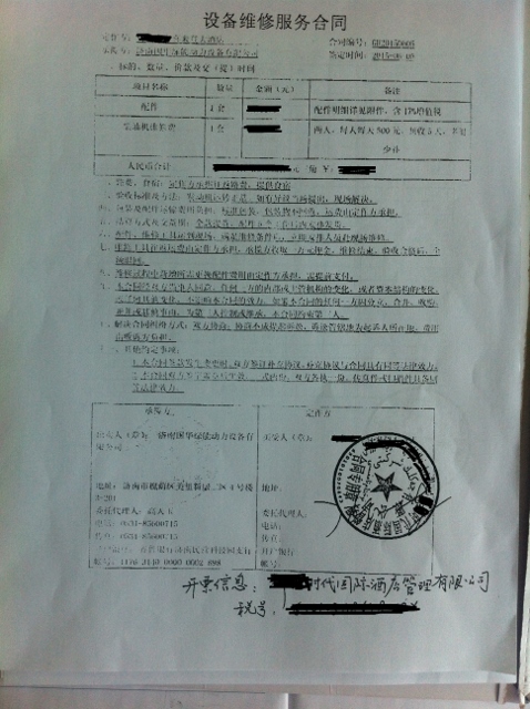 喜來登大酒店柴油發電機組維修合同簽訂